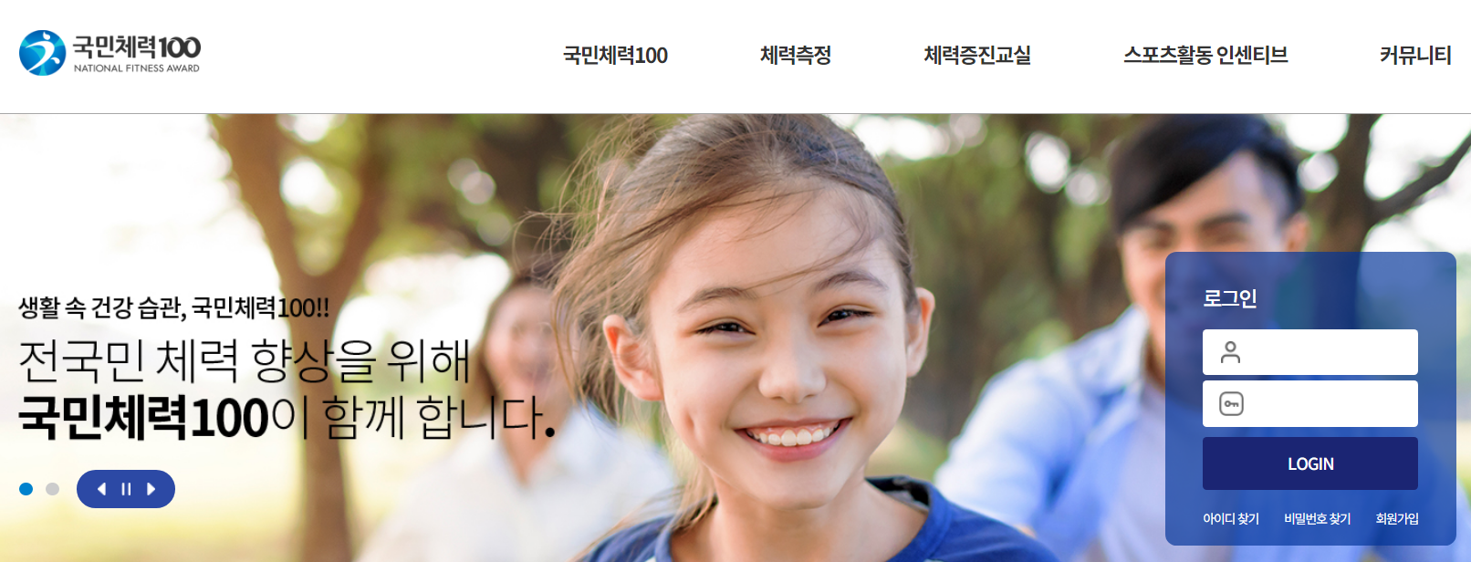 1. '국민체력100' 사이트(nfa.kspo.or.kr)에서 회원가입 (회원 가입시 1천 포인트 적립)