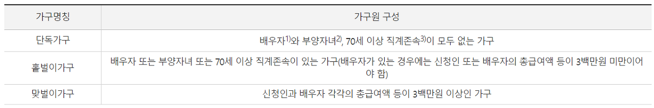 내가 어떤 가구 유형에 속하고, 부부합산 소득액 기준 확인 후, 재산 요건 기준까지
