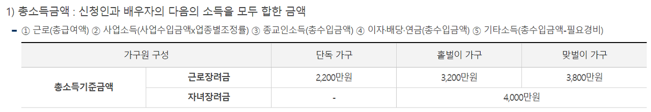 예시 ) 맞벌이 가구의 경우, 근로장려금 신청가능 총소득기준금액은 3,800만원미만 입니다.