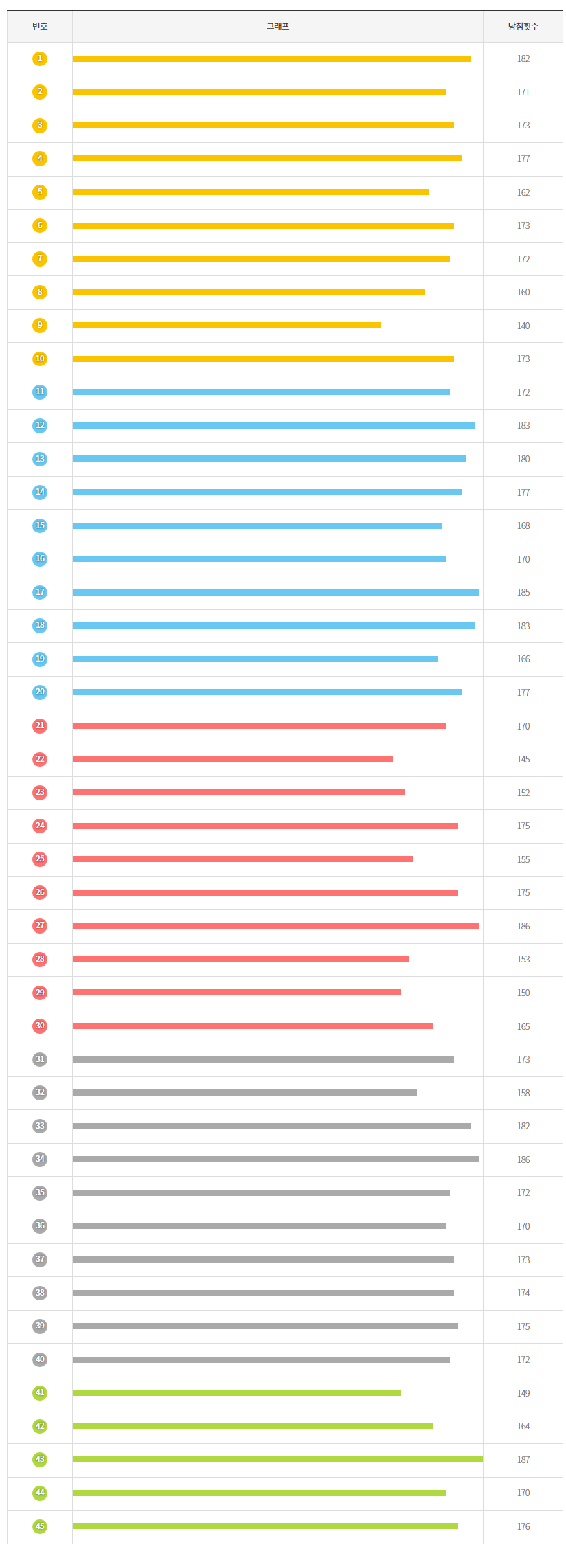 아래 그 동안의 로또 번호 당첨번호 통계자료 확인하시고, 번호선정에 도움되시기 바랍니다.