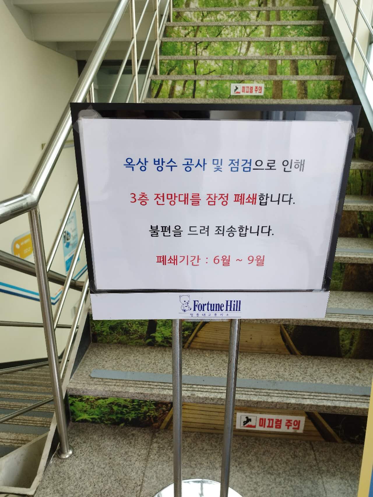 전망대가 보고 싶어서, 올라가려고 했는데, 공사 중이어서 9월까지 폐쇄한다고 하네요~