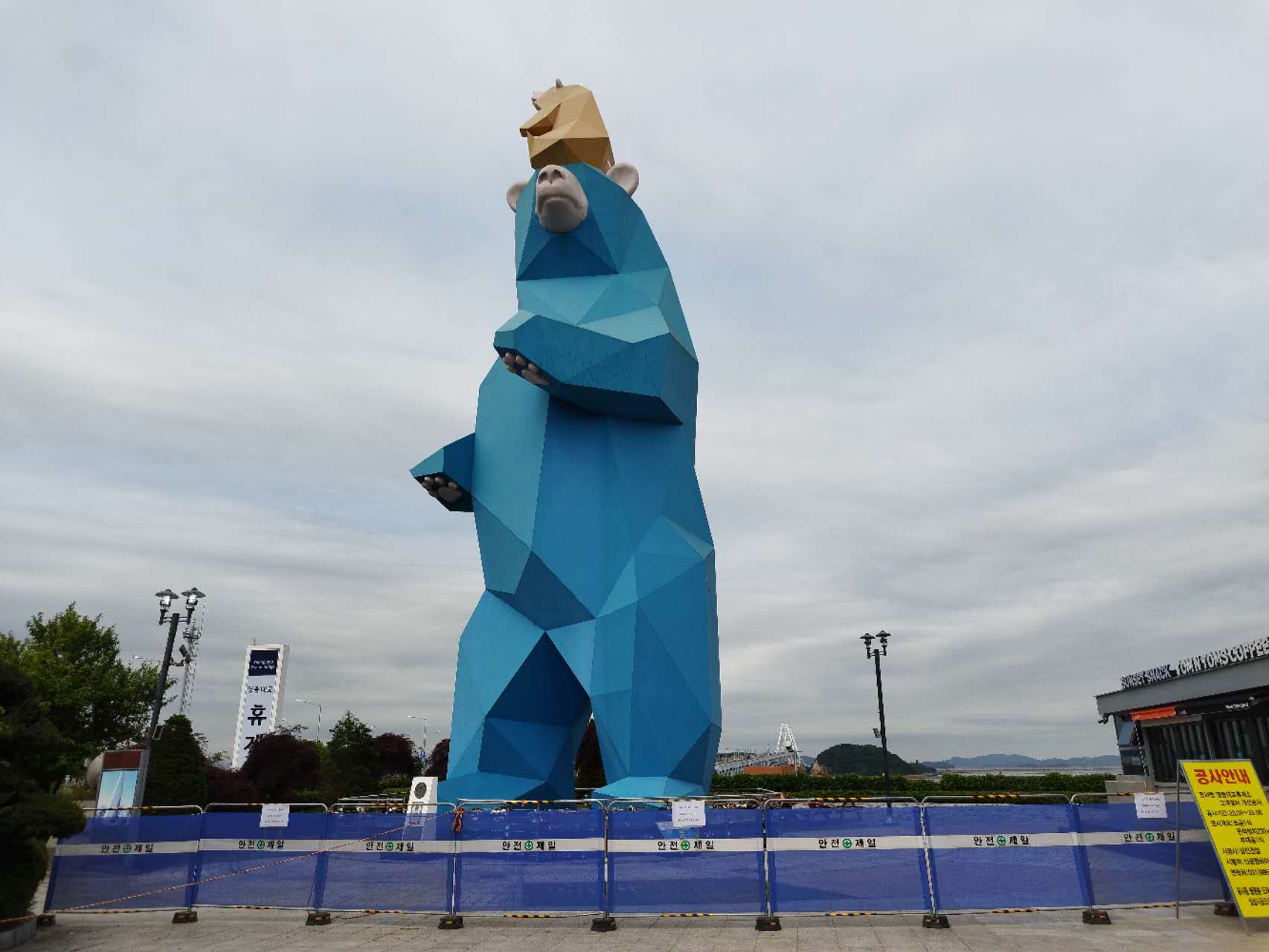 영종대교 휴게소의 랜드 조형물인 대형 곰을 볼 수 있습니다.