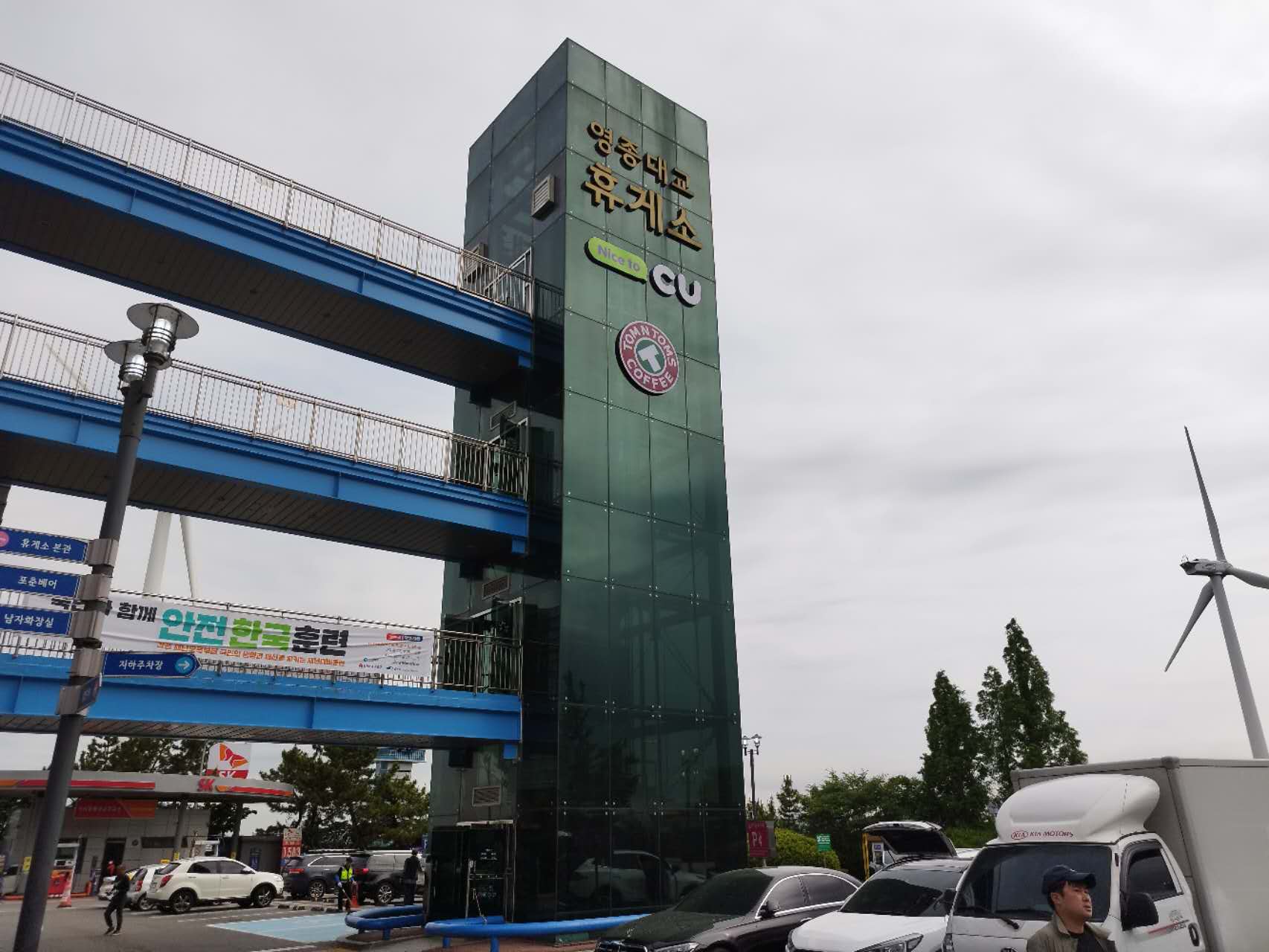 인천공항 가는 길에 휴게소 진입하시면, 이렇게 영종대교 휴게소라고 적혀있는 건물을 맞이하게 됩니다.