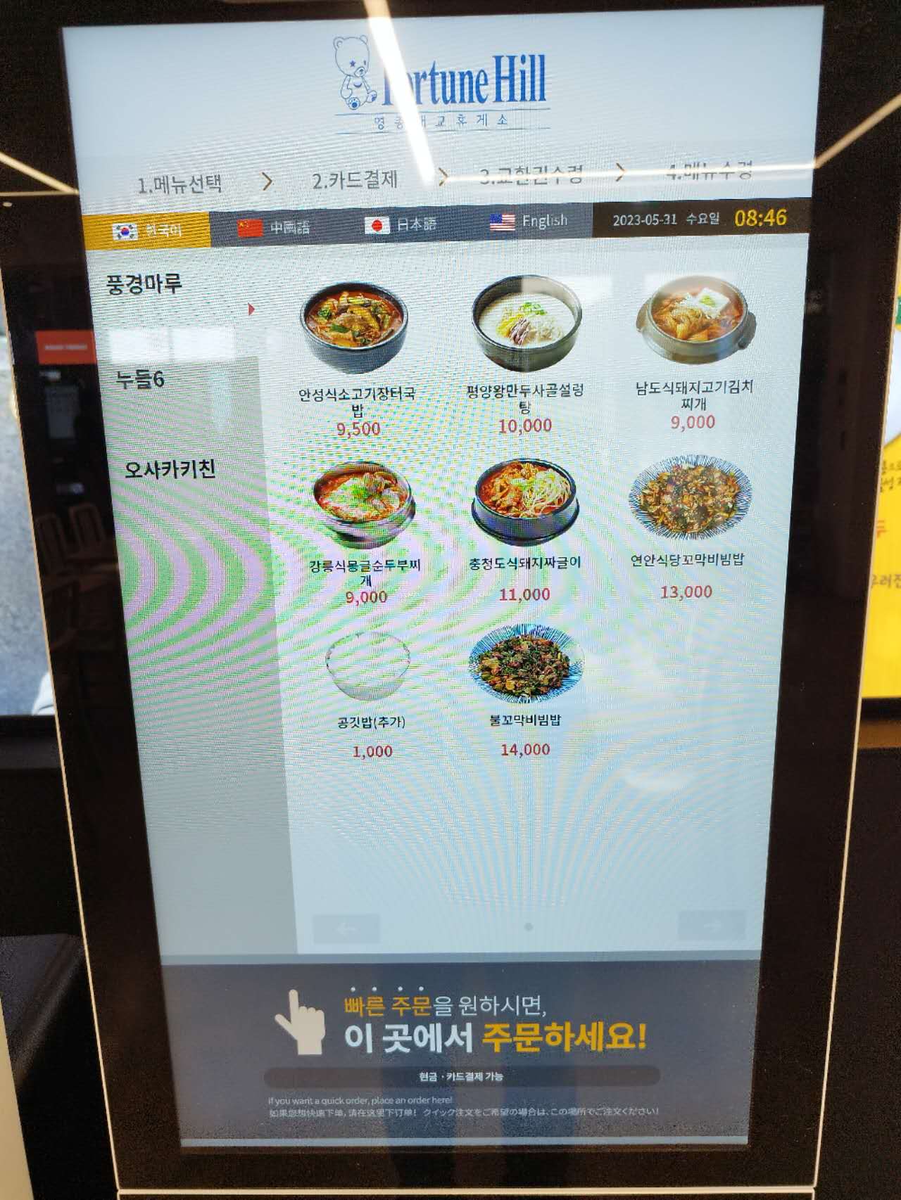 휴게소 입구에는 인천공항과 가까운 휴게소 답게 운항정보 데시보드 TV가 있고, 현금ATM도 비치되어 있습니다.