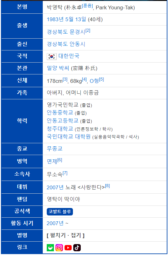 영탁 SNS