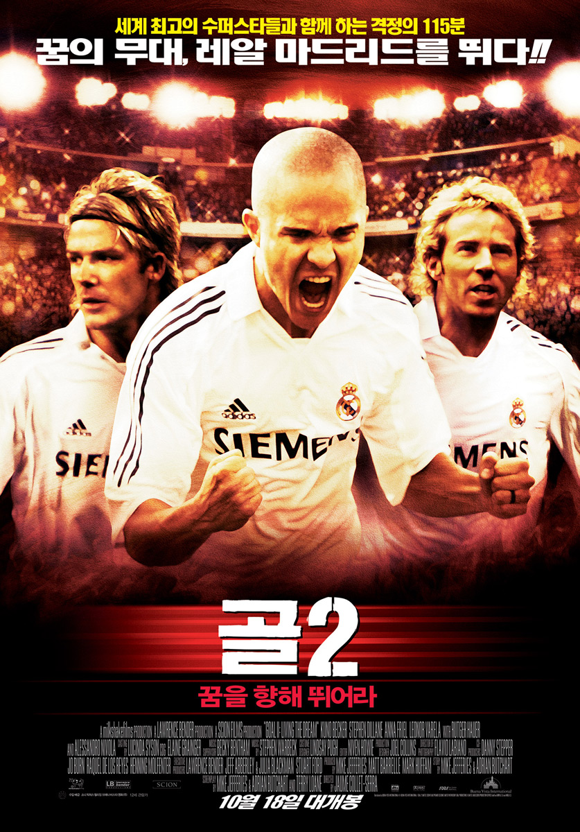 영화 스토리상의 전개나 완성도는 역시나 1편 전작이 더 낫지 않나 생각됩니다. 그래도 보고 나면 나쁘지 않네? 라는 마음도 듭니다. 그리고 무엇보다 베컴, 지단 등의 세계적인 축구 선수라 출연하는 볼거리가 있기에 재밌게 느껴진 부분이 있습니다. 스타 선수가 되는 과정에서 다가오는 유혹과 스캔들, 친모의 출현과 오해를 푸는 장면, 마지막 경기에서 기적적인 승리를 거두는 모습등 영화적인 스토리 연결 요소가 예상되는 부분인 점도 있습니다. 하지만 1편에 이어, 역시나 축구를 좋아하는 분이라면 볼 만한 영화라고 생각됩니다. 또한 마지막 부분에서 산티아고와 로즈의 관계가 열린 결말 처럼 진행되는데, 솔직히 3편까지 나올만한 영화는 아니라고 생각하지만, 나름 머리 속에 3편이 위 스토리에 이어서 나온다면 어떤 진행으로 이어질까 상상도 해봅니다. 전작보다 나은 후속편은 없지만, 그래도 나쁘지 않았던 골2 영화였습니다.