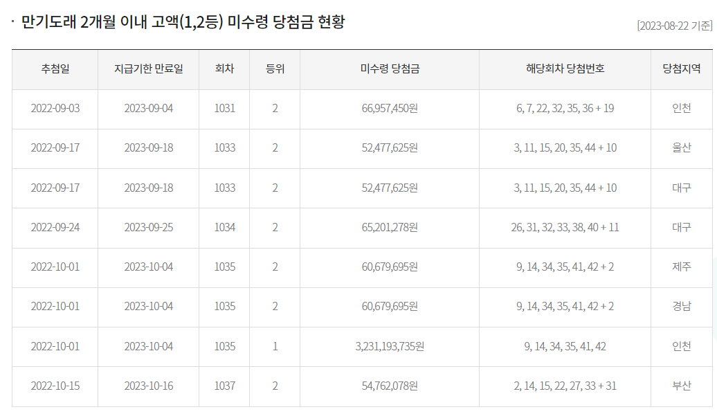1035회 미수령 당첨금은 약 32억을 넘어서네요~