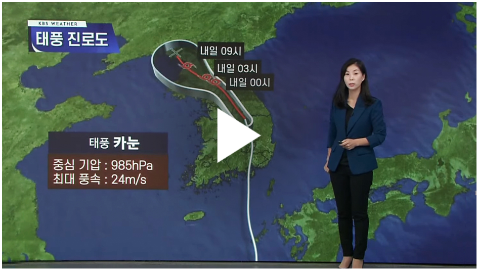 태풍 '카눈'은 현재 중심기압이 985헥토파스칼, 중심부근에서