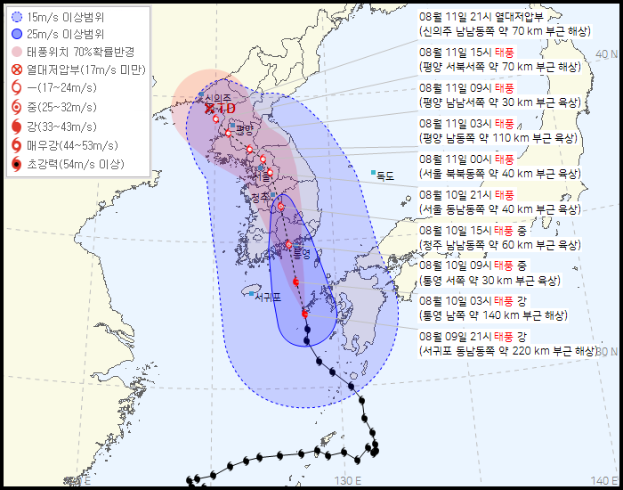 그럼에도 태풍의 중심부가 한반도를 관통하기 때문에 전국의 동서 지역 구분 없이