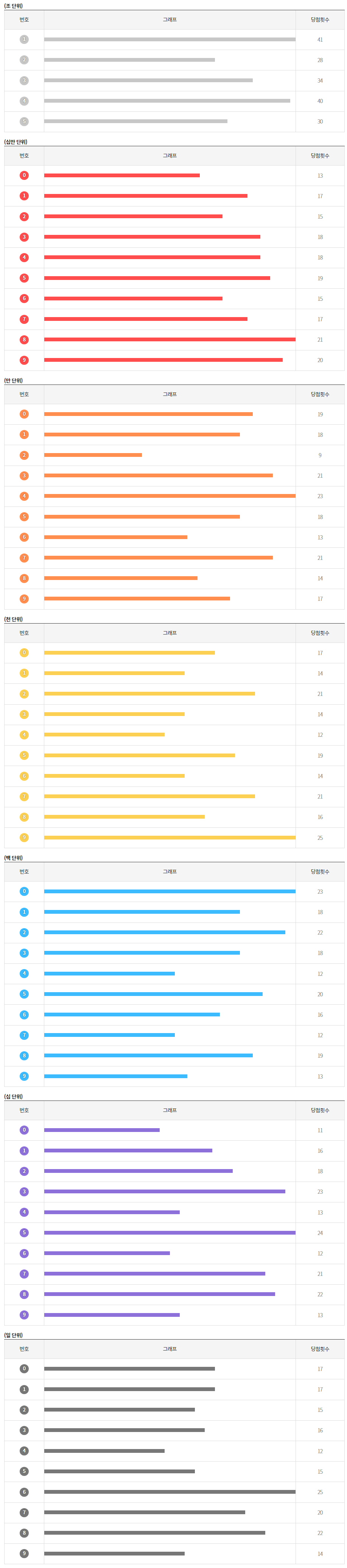 1회부터 173회까지 연금복권 당첨번호 누적통계 결과,
